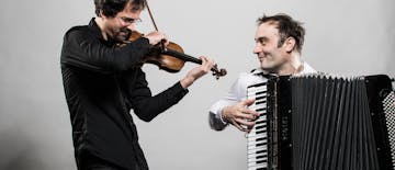 Aside from their academically polished and easy-flowing playing style, and the vast emotional investment they put into their live performances, the duo are well known for frequent tempo and harmony shifts and a complete mastery of dynamic. The duo’s musical horizon knows virtually no limits when it comes to idea design and composition, extending all the way from musical motifs of the Scandinavian peoples in the north to the laid-back attitude of the Mediterranean in the south and the fiery emotions of Constantinople in the east, often seasoned with Alpine major and Slavic minor. Their music also flirts with some Latin American styles and is neatly rounded up with a hefty dose of classical music and jazz.