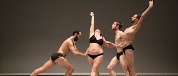 Choreography by Silvia Gribaudi • Dramaturgy by Silvia Gribaudi and Matteo Maffesanti • Performers Silvia Gribaudi, Siro Guglielmi, Matteo Marchesi and Andrea Rampazzo • Lighting Design by Antonio Rinaldi • Technical Direction by Leonardo Benetollo • Costume Design by Elena Rossi • Produced by Zebra • Coproduced with Santarcangelo Festival • Supported by MiC – Italian Ministry of Cultural Affairs.