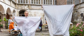 Photo: EMPACT workshop / Compassion for nature, Embroidery workshop with artist Saša Bezjak, 18 and 19 September 2023, Castle Cmurek / Museum of madness in Trate, photo: Jakob Vogrinec and Urška Dokl