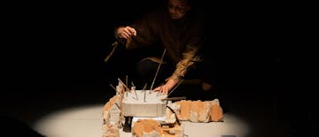 The performance Circle explores the public park as a neuralgic point of public life – a place of community formation, a place of social collaboration and the search for connections between people. The starting point is the concrete park of the railway workers in Cluj-Napoca, which has undergone many transformations. Neja Tomšič researched its history and current fate. The performance is accompanied by a narrative using sound and visual tools and sculptures made of materials from different construction sites. Both Neja and Nonument Group explore and narrate political and social ideas, movements and policies whose changes are reflected in material reality – in shared public spaces, buildings… Circle remains a topical work of art, as each time it re-contextualises the place where it is performed – be it the history of the Cukrarna (former sugar refinery), the former synagogue, Stara mestna elektrarna (Old Power Station) or the Judgement Tower.